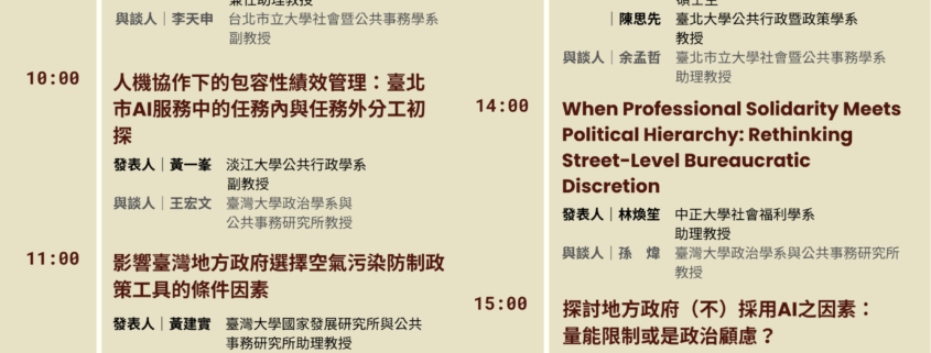 - 辦理單位:臺灣大學公共事務研究所、臺灣大學政治學系、地方治理之績效評鑑與重大個案分析團隊、臺灣大學永續與協力治理研究中心、台灣地方治理研究學會
